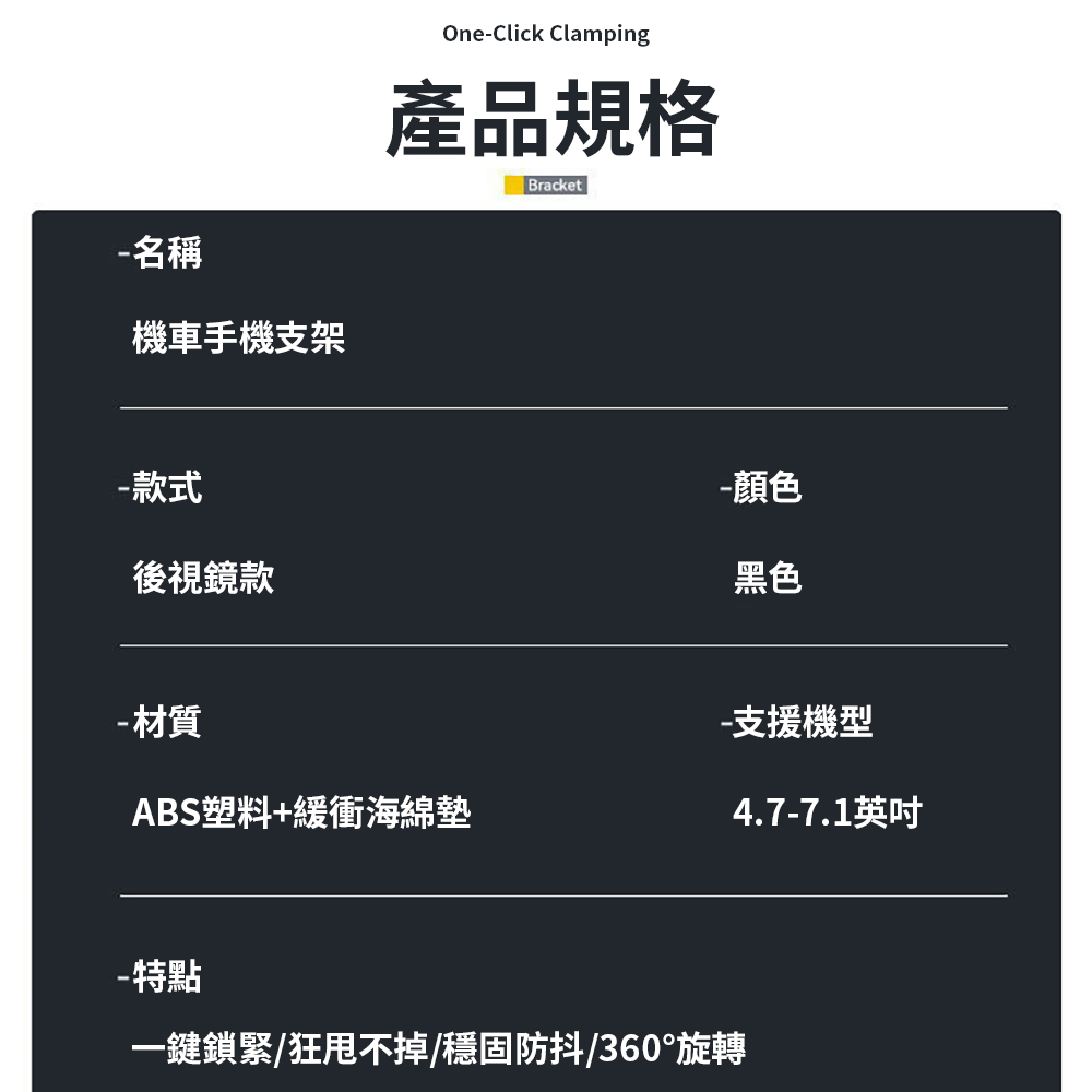 配件:後視鏡固定支架x1 支架本體x1 組裝工具x1